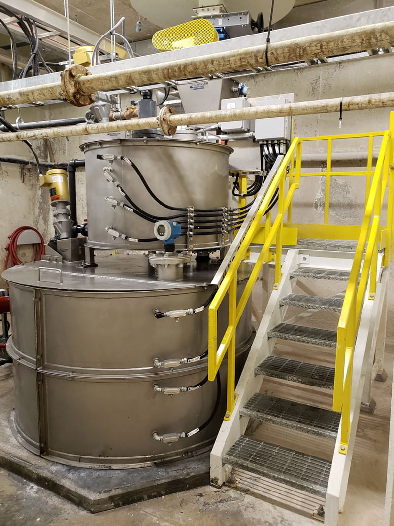 Système pour le dosage, le mélange et la distribution de chaux pour le traitement de l'eau à partir d'un silo existant.