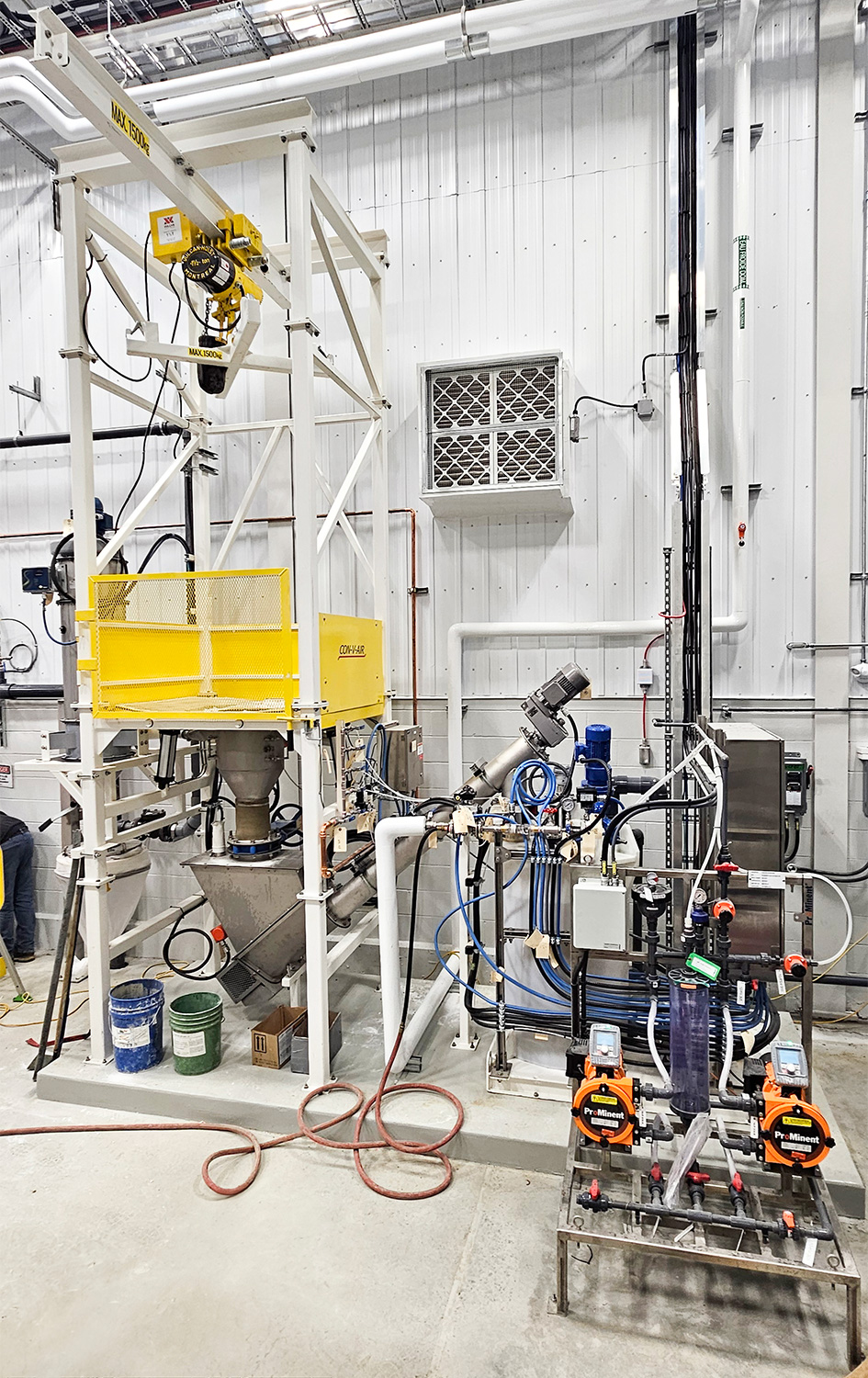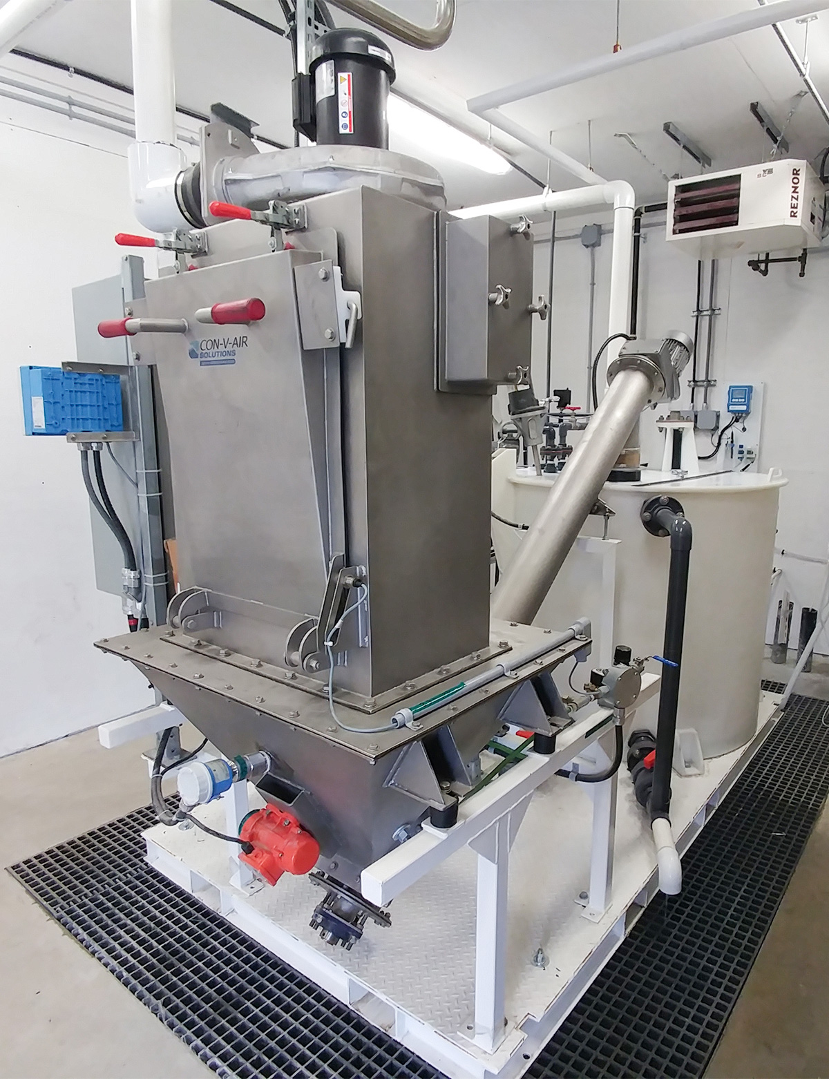 Chaque système comprend des composants standards développés et fabriqués par CON-V-AIR, tels que des équipements de manutention de sacs, des doseurs volumétriques ou gravimétriques, des cuves de mélange, des systèmes de pompage, des équipements de sécurité et des panneaux de contrôle intégrés.